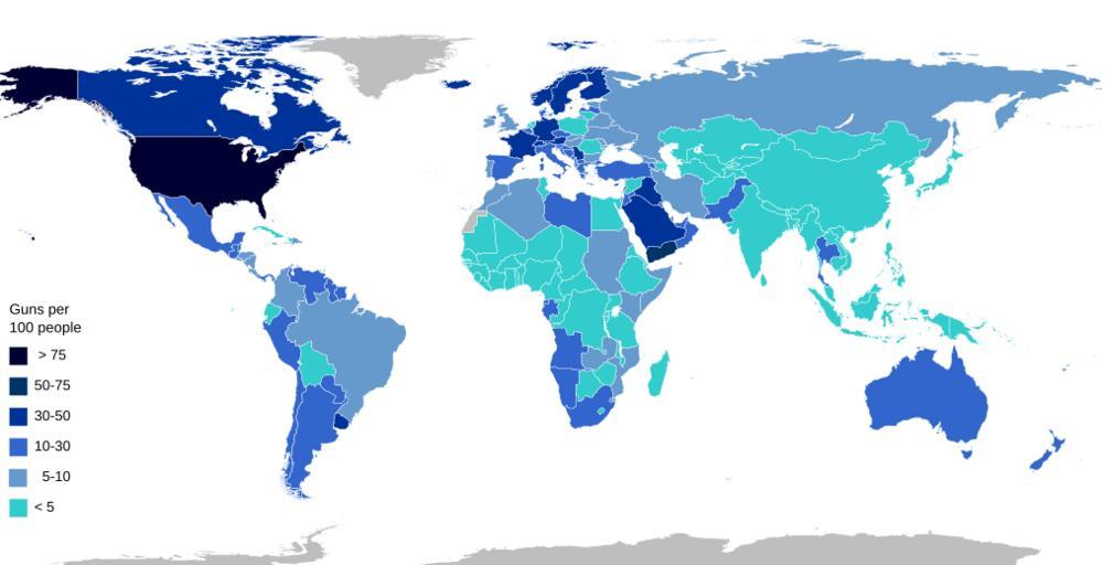 Keywords: World map of civilian gun ownership - 2nd color scheme.svg Uploaded with en wp UW marker 2013 05 14 en World map of civilian gun ownership Guns privately owned small firearms per 100 capita in 2007 BlankMap-FlatWorld6 svg Data from http //www smallarmssurvey org/fileadmin/docs/A-Yearbook/2007/en/Small-Arms-Survey-2007-Chapter-02-annexe-4-EN pdf Small Arms Survey 2007 by the the Graduate Institute of International and Development Studies in Geneva RGloucester 2013-05-14 File World map of civilian gun ownership svg Maps of firearm statistics SVG maps of the world 2007 maps Maps needing South Sudan political boundaries cc-zero |
