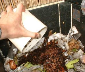 | Keywords: Worms just added.jpg en Composting-worms just added to a fresh batch of garbage in a self-made worm-bin nl Compostwormen zojuist toegevoegd bij een verse hoop groenafval in zelfgemaakte wormenbak own Mathijs Romans 2008-06-04 Vermicomposting |