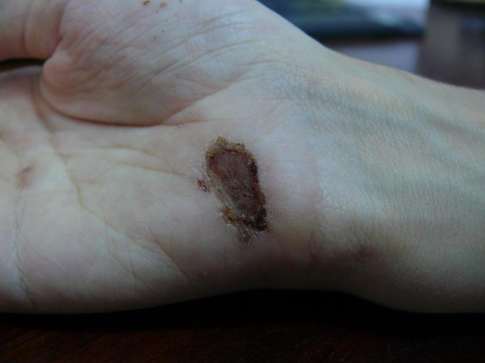 | Keywords: Wound on palm of hand - day 9.jpg Wound on palm of hand nine days after falling off a bike onto concrete <br> Previous photos <br> Day 1 Image Wound on palm of hand jpg<br> Day 2 Image Wound on palm of hand - day 2 jpg<br> Day 3 Image Wound on palm of hand - day 3 jpg<br> Day 4 Image Wound on palm of hand - day 4 jpg<br> Day 5 Image Wound on palm of hand - day 5 jpg<br> Day 6 Image Wound on palm of hand - day 6 jpg<br> Day 7 Image Wound on palm of hand - day 7 jpg<br> Day 8 Image Wound on palm of hand - day 8 jpg<br> Following photos <br> Day 10 Image Wound on palm of hand - day 10 jpg<br> Day 11 Image Wound on palm of hand - day 11 jpg<br> Day 12 Image Wound on palm of hand - day 12 jpg<br> Day 13 Image Wound on palm of hand - day 13 jpg<br> Day 14 Image Wound on palm of hand - day 14 jpg<br> Day 15 Image Wound on palm of hand - day 15 jpg<br> Day 16 Image Wound on palm of hand - day 16 jpg<br> Day 17 Image Wound on palm of hand - day 17 jpg<br> Day 18 Image Wound on palm of hand - day 18 jpg<br> Day 19 Image Wound on palm of hand - day 19 jpg<br> Day 20 Image Wound on palm of hand - day 20 jpg Own 2008-03-24 Arria Belli public domain Wound healing Wounds on the wrist and hand Diseases and disorders of the hands |