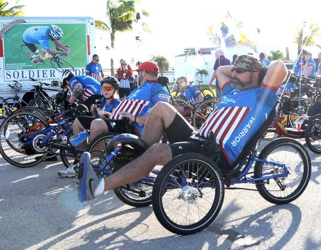 | Keywords: Wounded Warrior Project Soldier Ride 2015 150111-N-HL010-008.jpg en Wounded warriors prepare to ride across Key West in the annual Soldier Ride at Naval Air Station Key West ™s Boca Chica Field Wounded Warrior Project ™s Soldier Ride is an opportunity for wounded service members and veterans to use cycling and the bonds of service in overcoming physical mental or emotional wounds 2015-01-11 U S Navy photo by Jolene Scholl/ Released https //www dvidshub net/image/1722187 150111-N-HL010-008 2015-01-13 10 48 KEY WEST FL US PD-USGov-Military-Navy Naval Air Station Key West Wounded Warrior 2015 Images from DoD uploaded by Fæ |