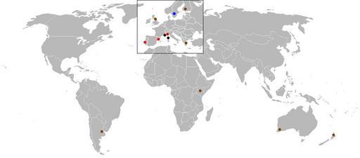 Keywords: WRC-1994.png Map of World Rally Championship rallies held in 1994 Color coding is black for tarmac events brown for gravel blue for snow/ice and red for mixed surface events 2007-03-27 Josh Baumgartner Josh 16 33 27 March 2007 UTC Public domain World Rally Championship maps 1994 in auto racing |