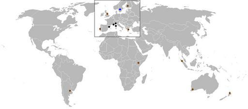 Keywords: WRC-1997.png Map of World Rally Championship rallies held in 1997 Color coding is black for tarmac events brown for gravel blue for snow/ice and red for mixed surface events 2007-03-27 Josh Baumgartner Josh 16 34 27 March 2007 UTC Public domain 1997 in auto racing World Rally Championship maps |