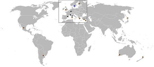 Keywords: WRC-2004.png Map of World Rally Championship rallies held in 2004 Color coding is black for tarmac events brown for gravel blue for snow/ice and red for mixed surface events 2007-03-27 Josh Baumgartner Josh 16 37 27 March 2007 UTC Public domain World Rally Championship maps 2004 in World Rally Championship |