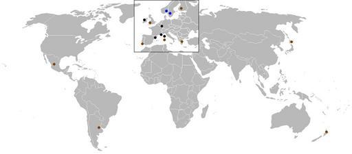 Keywords: WRC-2007.png Map of World Rally Championship rallies held in 2007 Color coding is black for tarmac events brown for gravel blue for snow/ice and red for mixed surface events 2007-03-27 Josh Baumgartner Josh 16 39 27 March 2007 UTC Public domain World Rally Championship maps 2007 in World Rally Championship |