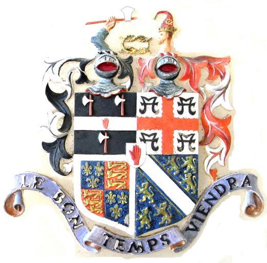 | Keywords: WreyArms.JPG Bourchier ; 3rd Plantagenet; 4th de Bohun Above the shield in the centre is the Bourchier Knot Above to the dexter is the crest of Wrey A cubit arm embowed holding an axe on the sinister side is the crest of Bourchier A man's head in profile proper ducally crowned or with a pointed cap gules<ref>Vivian Visitation of Devon 1895 p 106</ref> On a scroll underneath the motto of Bourchier Le Bon Temps Viendra The right time will come own photo Lobsterthermidor <span class signature-talk >talk</span> 13 43 20 March 2013 UTC Photo 2013 St Peter's Church Tawstock interior Axes in heraldry Wrey arms Bourchier arms Bohun arms Bourchier knot Coats of arms of Thomas of Woodstock |