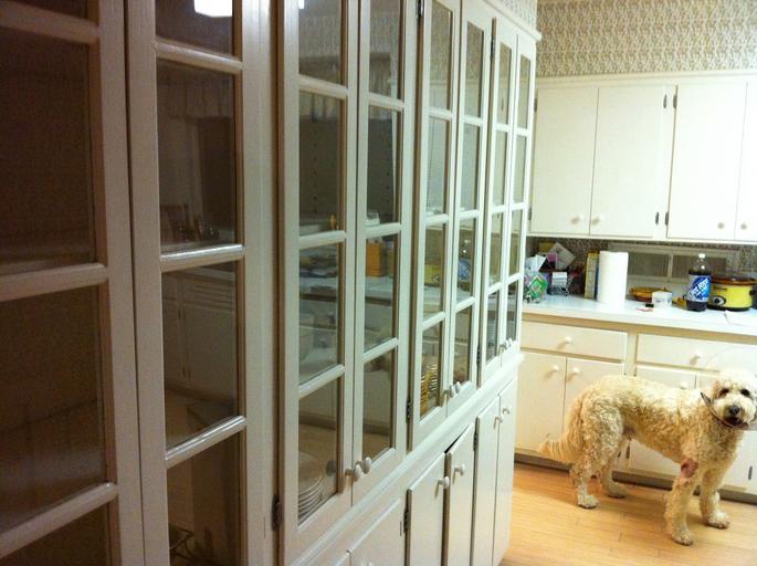 Keywords: Wrigley 0170.JPG en goldendoodle in kitchen wearing cone Persona photo Larry Greenberg date own file Cc-zero Goldendoodle Kitchens Veterinary medicine for dogs Veterinary treatments