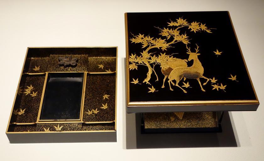 Keywords: Writing box, Edo period, 18th century, maple and deer design in maki-e lacquer - Tokyo National Museum - DSC05144.JPG en Lacquerware exhibit in the Tokyo National Museum Tokyo Japan This artwork is old enough so that it is in the public domain 2013-09-02 21 29 11 own Daderot PD-100 cc-zero Edo lacquerware in the Tokyo National Museum Uploaded with UploadWizard Maki-e |