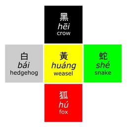 | Keywords: Wudaxian (Five Great Immortals).svg Diagram representing the cosmological disposition of the Wǔdàxiān 五大仙 Five Great Immortals gods of northeast China Own work Aethelwolf Emsworth 26-08-2016 Aethelwolf Emsworth Chinese folk religion Chinese philosophy symbols |