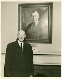 | Keywords: birthplace foundation indoor Mr. Francis Bowes Sayre, son-in-law of Woodrow Wilson, in front of a portrait of the president. Date: January 28, 1962. Mr. Francis Bowes Sayre, son-in-law of Woodrow Wilson, in front of a portrait of the president. Date: January 28, 1962. |