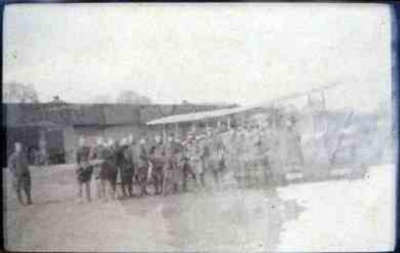 | Keywords: the great war thegreatwar great war greatwar world war i worldwari world war one worldwarone the first world war thefirstworldwar wwi ww1 aviation aircraft airplane biplane military aviation militaryaviation outdoor View of unidentified American Army Air Service aviators and members standing beside a biplane next to an aircraft hangar somewhere in France during World War I [believed to be the 278th Aero Squadron] (undated)[Photograph collected by or taken by Henry L. Graves]. --From Henry L. Graves Papers, WWI 55, Military Collection, State Archives of North Carolina View of unidentified American Army Air Service aviators and members standing beside a biplane next to an aircraft hangar somewhere in France during World War I [believed to be the 278th Aero Squadron] (undated)[Photograph collected by or taken by Henry L. Graves]. --From Henry L. Graves Papers, WWI 55, Military Collection, State Archives of North Carolina |