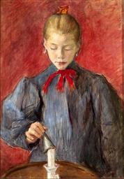 Keywords: Wyspiański Girl putting out a candle.JPG Artwork Creator Stanisław Wyspiański 1893 oil canvas cm 65 46 Institution National Museum Warsaw Not on view accession number MP 1082 object history credit line SW / Paris 93 signature/location/date http //rynekisztuka pl/2012/07/31/stanislaw-wyspianski-malarz-poeta-projektant/ rynekisztuka pl See below PD-old-100 DEFAULTSORT 1893; Girl putting out a candle Paintings by Stanisław Wyspiański in the National Museum in Warsaw Females with candles in art 1893 paintings Front view portrait paintings of females |