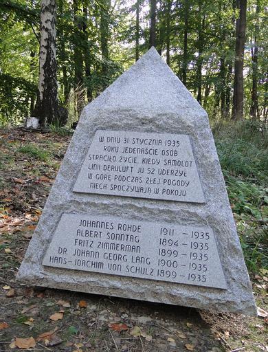 Keywords: Wzgorze Bukowiec pod Szczecinem pomnik (2).jpg pl Pomnik ofiar katastrofy lotniczej 31 01 1935 pod Bukowcem koło Szczecina own Kapitel 2012 Gmina Stare Czarnowo Szczecin Landscape Park Puszcza Bukowa Cc-zero