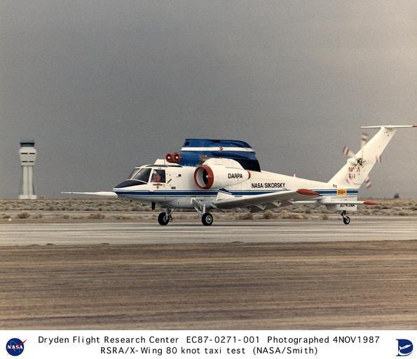 Keywords: X-Wing RSRA - 80 Knot Taxi Test DVIDS728878.jpg en The Rotor Systems Research Aircraft/X-Wing a vehicle that was used to demonstrate an advanced rotor/fixed wing concept called X-Wing is shown here during high-speed taxi tests at NASA's Ames-Dryden Flight Research Facility later redesignated Dryden Flight Research Center Edwards California on 4 November 1987 During these tests the vehicle made three taxi tests at speeds of up to 138 knots On the third run the RSRA/X-Wing lifted off the runway to a 25-foot height for about 16 seconds This liftoff maneuver was pre-planned as an aid to evaluations for first flight At the controls were NASA pilot G Warren Hall and Sikorsky pilot W Faull The unusual aircraft that resulted from the Ames Research Center/Army X-Wing Project was flown at the Ames-Dryden Flight Research Facility now Dryden Flight Research Center Edwards California beginning in the spring of 1984 with a follow-on program beginning in 1986 The program was conceived to provide an efficient combination of the vertical lift characteristic of conventional helicopters and the high cruise speed of fixed-wing aircraft It consisted of a hybrid vehicle called the NASA/Army Rotor Systems Research Aircraft RSRA which was equipped with advanced X-wing rotor systems The program began in the early 1970s to investigate ways to increase the speed of rotor aircraft as well as their performance reliability and safety It also sought to reduce the noise vibration and maintenance costs of helicopters Sikorsky Aircraft Division of United Technologies Laboratories built two RSRA aircraft NASA's Langley Research Center Hampton Virginia did some initial testing and transferred the program to Ames Research Center Mountain View California for an extensive flight research program conducted by Ames and the Army The purpose of the 1984 tests was to demonstrate the fixed-wing capability of the helicopter/airplane hybrid research vehicle and explore its flight envelope and flying qualities These tests flown by Ames pilot G Warren Hall and Army Maj soon promoted to Lt Col Patrick Morris began in May and continued until October 1984 when the RSRA vehicle returned to Ames The project manager at Dryden for the flights was Wen Painter These early tests were preparatory for a future X-Wing rotor flight test project to be sponsored by NASA the Defense Advanced Research Projects Agency DARPA and Sikorsky Aircraft A later derivative X-Wing flew in 1987 The modified RSRA was developed to provide a vehicle for in-flight investigation and verification of new helicopter rotor-system concepts and supporting technology The RSRA could be configured to fly as an airplane with fixed wings as a helicopter or as a compound vehicle that could transition between the two configurations NASA and DARPA selected Sikorsky in 1984 to convert one of the original RSRAs to the new demonstrator aircraft for the X-Wing concept Developers of X-Wing technology did not view the X-Wing as a replacement for either helicopters rotor aircraft or fixed-wing aircraft Instead they envisioned it as an aircraft with special enhanced capabilities to perform missions that call for the low-speed efficiency and maneuverability of helicopters combined with the high cruise speed of fixed-wing aircraft Some such missions include air-to-air and air-to-ground tactical operations airborne early warning electronic intelligence antisubmarine warfare and search and rescue The follow-on X-Wing project was managed by James W Lane chief of the RSRA/X-Wing Project Office Ames Research Center Coordinating the Ames-Dryden flight effort in 1987 was Jack Kolf The X-Wing project was a joint effort of NASA-Ames DARPA the U S Army and Sikorsky Aircraft Stratford Connecticut The modified X-Wing aircraft was delivered to Ames-Dryden by Sikorsky Aircraft on September 25 1986 Following taxi tests initial flights in the aircraft mode without main rotors attached took place at Dryden in December 1997 Ames research pilot G Warren Hall and Sikorsky's W Richard Faull were the pilots The contract with Sikorsky ended that month and the program ended in January 1988 NASA Identifier NIX-EC87-0271-001 2009-09-23 Glenn Research Center https //www dvidshub net/image/728878 728878 2012-10-17 15 15 WASHINGTON DC US PD-USGov Langley Research Center aircraft Images from DoD uploaded by Fæ |