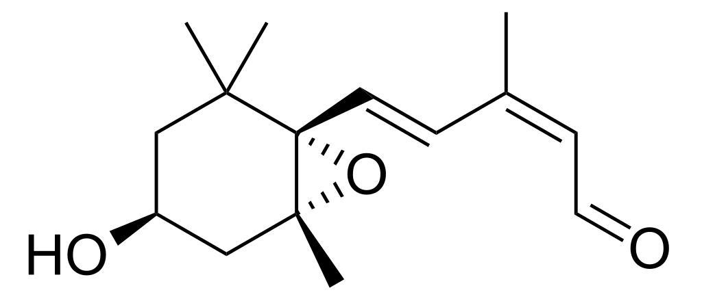 Keywords: Xanthoxin.svg Chemical structure of xanthoxin xanthoxal Own 17 49 15 July 2011 UTC Ed Edgar181 Carotenoids Epoxides Aldehydes