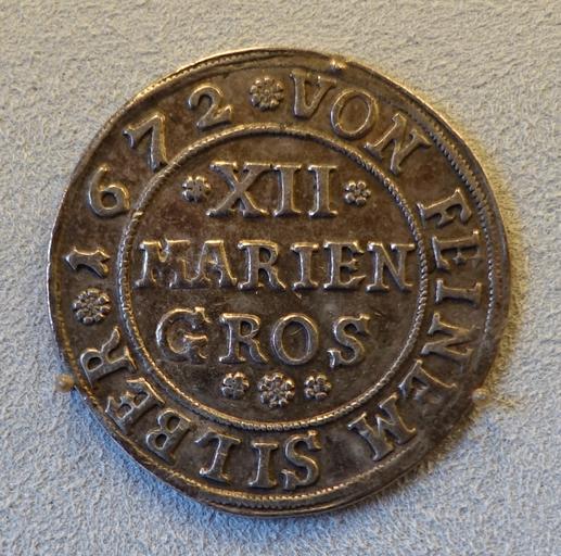 | Keywords: XII Mariengroschen, Hannover, 1672 - Bode-Museum - DSC02602.JPG en Exhibit in the Bode-Museum Berlin Germany This work is in the public domain because the artist died more than 100 years ago Photography was permitted in the museum without restriction 2014-11-12 09 09 38 own Daderot other versions PD-old-100 cc-zero Medieval and modern coins in the Bode-Museum Uploaded with UploadWizard | ||||