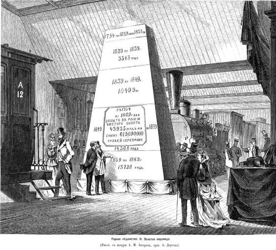 MAKE A MEME View Large Image XIV Всероссийская мануфактурная выставка, С-Пб, 1870. Горное дело. Золотая пирамида (4 сажени).jpg ru Экспонат выставки Позолоченная пи ...