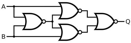 Keywords: XNOR from NOR.svg XOR gate from only NOR gates This method has a propagation delay 3 times that of a single gate own Inductiveload 2009-01-16 Alternative logic gates XNOR gates NOR gate symbols