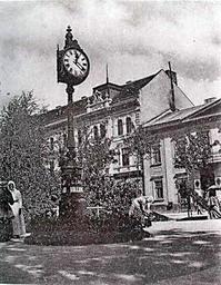 | Keywords: Тернопільський годинник - початок XX століття.jpg Т исто онній годинник у Те нополі встановлений влітку 1896 оку на пе ех есті вулиць 3 ая нині вул Гетьмана Сагайдачного і іцкевича на так званому ко со тепе ішній бульва Та аса Шевченка Початок XX століття Давня листівка author other versions 49 552363 25 594973 PD-Art Clock in Ternopil Historical images of Ternopil Uploaded by Mykola Vasylechko | ||||