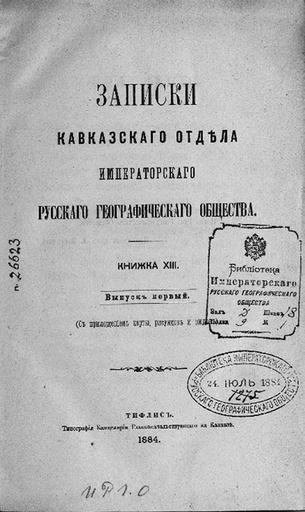 | Keywords: ЗКО ИРГО кн XIII вып 1.jpg ru Записки Кавказского отдела Импе ато ского усского геог афического общества Кн 13 вып 1 - Тифлис 1884 2015-12-20 14 38 31 сайт ВОО «Русское геог афическое общество» типог афия канцеля ии наместника кавказского other versions PD-old-70-1923 Uploaded with UploadWizard Uncategorized 2015 December 20 |