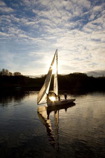 Keywords: yacht boat reflection sun water sailboat sail blue sky summer river