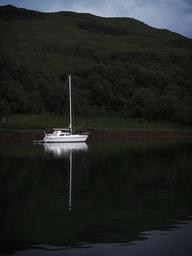 Keywords: yacht sailboat reflection yachting peace calm meditation ocean sea nautical vessel moored white mast tranquil tranquility evening dusk coast