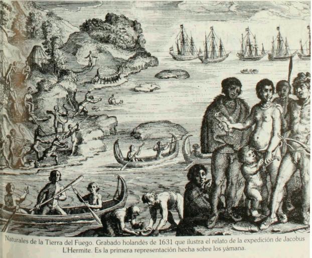 | Keywords: Yahgan-JacobusLHermite.gif es Naturales de la Tierra del Fuego grabado holandes de 1631 que ilustra el relato de la expedicion de Jacobus L'Hermite 1631 http //www memoriachilena cl/temas/documento_detalle asp id MC0053164 page 85 and ff Unknown Book of Mateo Martinic Crónica de las tierras del sur del canal Beagle PD-old-100 Uploaded with UploadWizard Yamana |