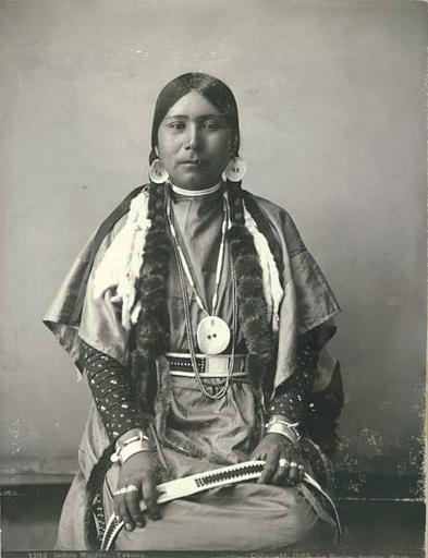 | Keywords: Yakama Indian woman, Washington, 1899 (LAROCHE 271).jpeg Photograph Creator Frank La Roche Studio portrait of a Yakama woman She is seated wearing a plain dress with a beaded belt and fur pieces hanging from her shoulders; shell earrings beaded necklaces bracelets and rings She is holding another beaded belt Caption on image Indian maiden Yakima Subjects LCSH Yakama Indians--Clothing dress; Yakama Indians--Women depicted place Washington state 1899 Institution University of Washington UWASH-LAROCHE-source accession number laroche 271 PD-old-auto-1923 1936 Information field Order Number LAR145 Yakama 1899 in Washington state People of Washington state 19th-century portrait photographs of sitting women at three-quarter length |