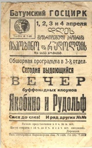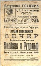 Keywords: Yakobino i rudollf.jpg en Yakobino Rudollf placard ru Якобино и Рудольф Афиша гаст олей в Батумском ци ке 1932 год Личный а хив Рудольф Славский 1932 1932 in Georgia Events in Batumi Slavskii Rudolf Evgenievich Concert posters of Russia