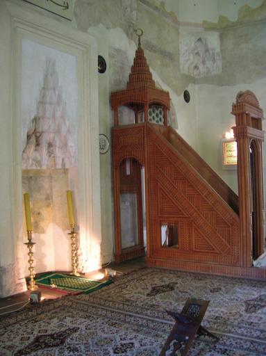 Keywords: Yakovali Hassan mosque, Pécs.jpg Inside of the Yakovali Hassan mosque Pécs Hungary Own 2007-09 Alensha Yakovali Hassan Mosque Minbars Mihrabs in Hungary