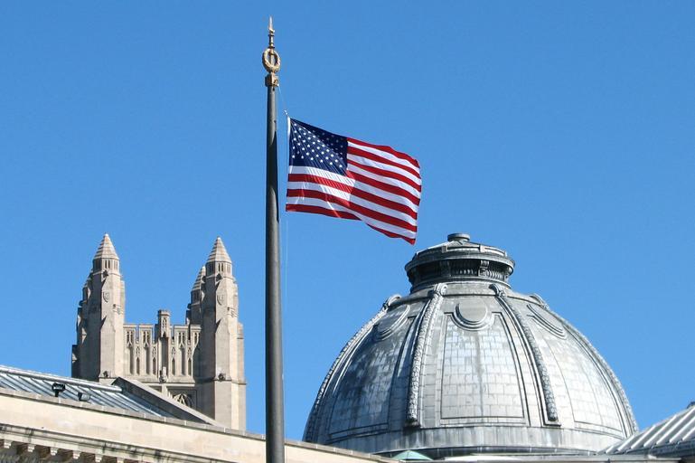| Keywords: Yale patriotism.jpg The American flag flying at Yale University On the left is the top of Sheffield Sterling Strathcona Hall; on the right is the cupola of Memorial Hall Photographs of flags of the United States Hewitt Quadrangle 2007-02-21 own assumed Ragesoss Woolsey Hall |