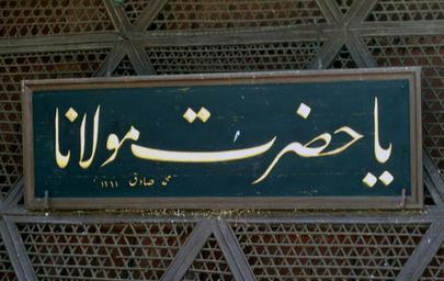 | Keywords: YaMawlana-calligraphy.jpg Ya Hazrate Mawlana roughly O Great Mawlana A calligraphy piece found at the top of the entry to Mevlâna Museum tr Mevlana Müzesi in Konya/Turkey Mawlana Museum was once the dergâh i e w Khanqah of Mawlana Mevlana Jalal ad-Din Muhammad Rumi Celaleddin Muhammed Rumî own Noumenon Arabic calligraphy Mevlana Museum Arabic inscriptions in Turkey Arabic calligraphy in applied art z Khanqah of Jalal ad-Din Rumi Taken with Kodak EasyShare DX7630 | ||||
