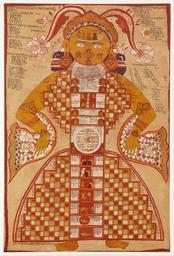 Keywords: Yantra Painting - Google Art Project.jpg commons date commons medium commons dimensions commons institution commons location commons references commons object_history commons exhibition_history commons credit_line commons inscriptions commons notes commons accession_number commons source commons permission commons other_versions commons zoom core title Yantra Painting core creator Unknown core date dateCreated 1700/1800 core format w93 x h139 cm Complete core type Painting core rights http //mnantropologia mcu es/ core relation http //ceres mcu es/pages/Main idt 25564 inventary CE18633 table FMUS museum MNA core format medium Gouache silk c-053bddb4 customtext cultural_context India c-053bddb4 location purchase India c-053bddb4 customtext subject Beliefs and ritual c-053bddb4 customtext notas_sobre_el_objeto Esta pintura o yantra representa a Purusha figura cósmica relacionada con el Hinduismo y el Jainismo creencias que tienen su origen en India En el vestido aparecen representados los distintos niveles de la existencia los ascendentes son los estados superiores y los descendentes las experiencias inferiores Los yantras son potenciadores de la energía humana por vía visual y se utilizan para imponer una disciplina a los ojos y a la mente de tal forma que se pueda llegar a la unidireccionalidad del pensamiento que es fundamental para la meditación Al estar acompañado de sílabas sagradas su poder especial se activa componiendo un mantra potenciador de la energía por la vía auditiva El uso de yantras está directamente relacionado con el tantra filosofía que es tanto una experiencia de vida como un método científico por el cual el hombre manifiesta su inherente poder espiritual En la mitad superior izquierda se aprecia la impronta accidental de la mano del artista manchada de pintura roja c-053bddb4 customtext procedencia_source Museo Nacional de Antropología c-053bddb4 customtext cultural_context_extent Complete c-053bddb4 customtext cultural_context_source Museo Nacional de Antropología c-053bddb4 customtext material_extent Complete c-053bddb4 customtext material_source Museo Nacional de Antropología c-053bddb4 customtext measurement_diameter_extent Complete c-053bddb4 customtext measurement_diameter_source Museo Nacional de Antropología c-053bddb4 customtext notas_sobre_el_objeto_extent Complete c-053bddb4 customtext notas_sobre_el_objeto_source Museo Nacional de Antropología c-053bddb4 customtext procedencia_extent Complete c-053bddb4 customtext subject_source Museo Nacional de Antropología c-053bddb4 customtext subject_extent Complete google display_date 1700/1800 google homepage_image TRUE google is_artproject TRUE google is_gigapixel FALSE google is_secured TRUE google partner/id 00000000053bddb4 google picasa_token XoCJl2TpNxJilukVCw_o-ZHwfkE special url_id xwELX0sRg8YNCQ google partner/name Museo Nacional de Antropología Madrid special partner/name_no_lang Museo Nacional de Antropología Madrid PD-old-100-1923 Collections from Asia in the Museo Nacional de Antropología España Google Art Project works by unknown artist yantra |