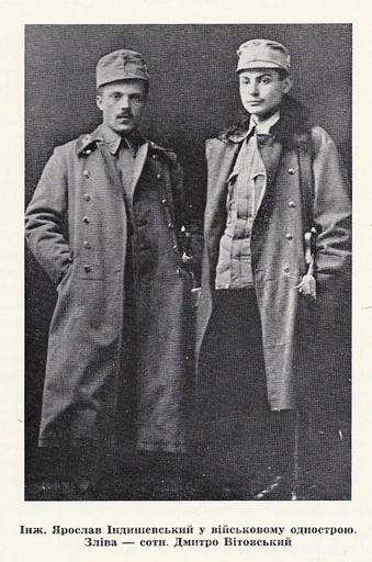 | Keywords: Yaroslav Indyshevskyi i Dmytro Vitovskyi.jpg uk Я ослав Індишевський сп ава у військовому одност ої з сотником Дмит ом Вітовським 1918 Зенон Книш а повні віт ила Ук аїнська військова о ганізація у 1924-1926 оках Па иж То онто 1970 c 77 author other versions PD-old-70-1923 Uncategorized 2016 May 13 |