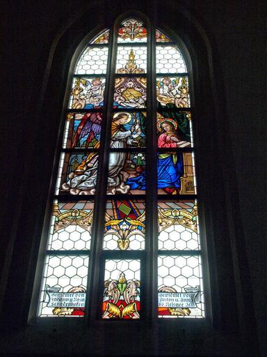Keywords: ybbs hl laurentius parish church stained glass window lower austria decor symbolic historic religious