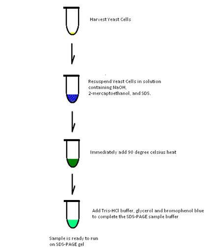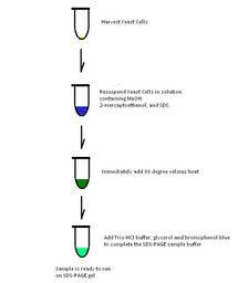 Keywords: Yeast Protein Preparation.PNG en Diagram of extracting and preparing yeast proteins for SDS-Page own Dk003m 2009-04-05 Cell diagrams Biochemistry