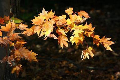 Keywords: yellow leaves maple autumn fall colorful sunlit