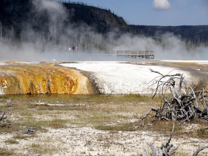 Keywords: yellowstone national park wyoming usa landscape scenery tourist attraction erosion steaming geyser nature volcanic minerals water steam volcanism hot geothermal pond colorful