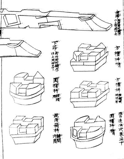 Keywords: Yingzao Fashi 5.JPG Working drawings of five different bracket arm bases and two cantilever arms from the Chinese building manual of the Yingzao Fashi published in the year 1103 by Li Jie an architect and official of the Song Dynasty This picture appears on page 109 of Joseph Needham's book Science and Civilization in China Volume 4 Part 3 Civil Engineering and Nautics own My book 2007-08-13 PericlesofAthens PD-art Art of the Song Dynasty Architecture in art Architecture of China Drawings of China PD China Science and technology in China |