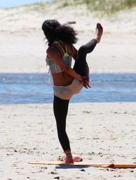 Keywords: yoga woman beach relaxation sand sporty beautiful