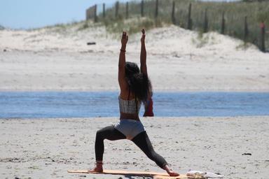 Keywords: yoga woman beach relaxation sand sporty beautiful
