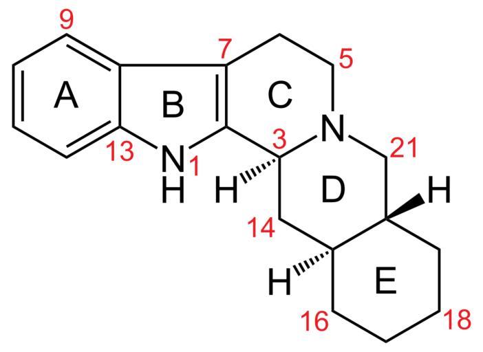 Keywords: Yohimban num.svg Struktur von Yohimban nummeriert Structure of yohimban numbered own 2007-03-29 NEUROtiker Own work all rights released Public domain de nicht nummeriert<br />en not numbered Indole alkaloids