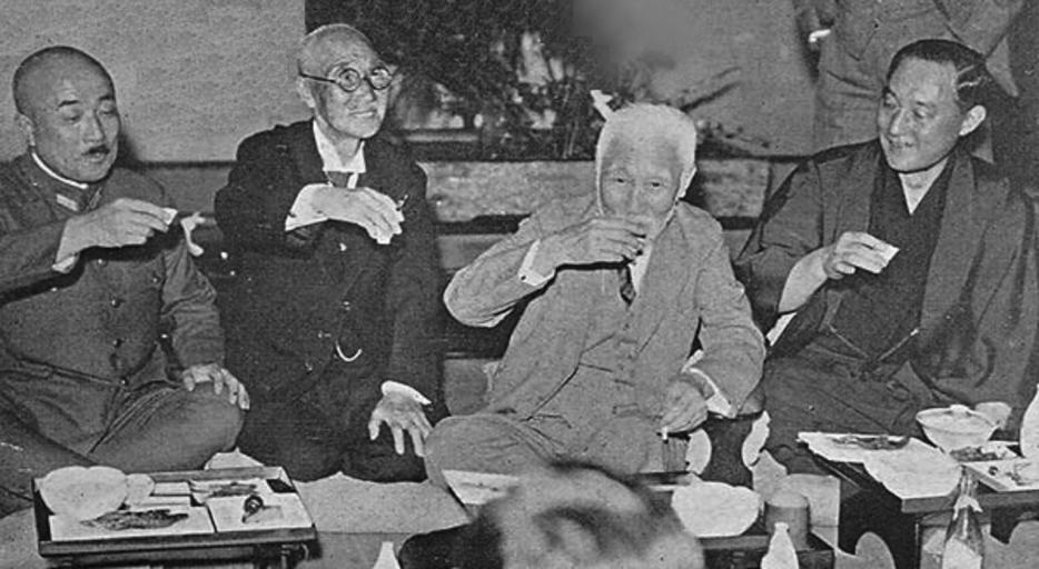 | Keywords: Yonai and Itagaki honoring their teacher.jpg ja 京の料亭 幸楽 で開かれた 恩会で盛岡中学時代の恩師・冨田小 郎(左から二人目)を囲 垣征四郎陸相( 左)と米内光政海相( 右) 同会には他にも 家の野 胡堂 語学 の金田 京助など 冨田の教え子たちが多く集った en A dinner party given to high-school teacher Koichirō Toyama 1859 45 second from left in his honor by his former students including War Minister Seishirō Itagaki 1885 1948 left Naval Minister Mitsumasa Yonai 1880 48 right linguist Kyōsuke Kindaichi and author Kodō Nomura at a banquet house in Tokyo http //kyoto cool ne jp/syasinsyuu/t40 htm 1939年6 3日 / 3 June 1939 アサヒグラフ 昭和十四年十 十 日號 / Asahi Graph 11 October 1939 issue PD-Japan-oldphoto 1939 in Tokyo Mitsumasa Yonai Seishiro Itagaki Asahi Graph |
