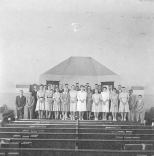 | Keywords: mennonite community mennonite church choir choral music mennonitecommunitymennonitechurchchoirchoralmusic lower deer creek church lowerdeercreekchurch stanley swartzendruber stanleyswartzendruber wellman iowa wellmaniowa singing blackandwhite monochrome outdoor black and white Caption: July, 1947. Wellman, Iowa. Chorus, young people. Directed by Stanley Swartzendruber. Taken inside of Lower Deer Creek Church.  Collection Citation: Mennonite Community Photograph Collection, 1947-1953, Service. HM4-134 Box 1 Photo 092-6. Mennonite Church USA Archives - Goshen. Goshen, Indiana.  Caption: July, 1947. Wellman, Iowa. Chorus, young people. Directed by Stanley Swartzendruber. Taken inside of Lower Deer Creek Church.  Collection Citation: Mennonite Community Photograph Collection, 1947-1953, Service. HM4-134 Box 1 Photo 092-6. Mennonite Church USA Archives - Goshen. Goshen, Indiana. |