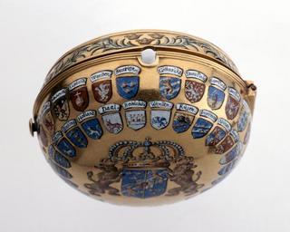 Keywords: Ytterboett dekorerat med landskapsvapen - Livrustkammaren - 64990.tif LSH artwork sv Ytterboett av guld öppet lock för glaset gångjärn vid v sida stängning med fjädrande tryckknapp på h sida Troligen försedd med emaljdekor i Sverige stavning och rätt avbildade vapen det svenska krönta riksvapnet under huset Pfalz med två bakåtseende lejon som sköldhållare inget postament Däromkring två ringar med 49 landskapsvapen med ett textband ovanför I yttre ringen rakt ovanför kronan ett större mellanrum mellan vapensköldarna Därifrån till h <br/> Götha rijke; Stora Finla; Norr Finl; Söder Finl; Estland; Lifland; Careln; Brehmen; Werden; Stetin; Pomern; Cassuben; Wermland; Nerkie; Helsingl; Dahlarne; Westmanl; Södermal; Skåne ; ett litet mellanrum vid stängningsknappen; Östergöthl; Småland; Westergötl; Upland; Wenden; Suerige <br/>Inre ringen med början på samma ställe <br/>Wenden; Rügen; Ingerman; Naruen; Tauastl; Kexholm; Nyland; Österbott; Åland; Ösel; Melpad; Lappland; Wismar; Sauolax; Jemtlan; Gestrikl; Westerbotn; Ångermanl; Oeland; Gotland; Bleking; Halland Daal; Bohuus original caption Ytterboett dekorerat med landskapsvapen <br/> Nyckelord Heraldik Stölden på Livrustkammaren 1968 1701 size mm 55 vid gångjärnet size mm 54 size mm 26 g 46 LRK Karl XII av Sverige Kunglig tid 1999 Tidens Form Nationalmuseum 2008 Det Glittrar arb namn prel till 30 aug 2015 2014-2015 Livrustkammaren Bleking Blekinge vapen Bohuus Bohusläns vapen Brehmen Bremens vapen Careln Karelens vapen Cassuben Kassubens vapen Daal Dalslands vapen Dahlarne Dalarnas vapen Estland Estlands vapen Stora Finla Finlands vapen Storfurstend Finlands vapen Gestrikl Gästriklands vapen Gotland Gotlands vapen Götha rijke Göta vapen Halland Hallands vapen Helsingl Hälsinglands vapen Ingerman Ingermanlands vapen Jemtlan Jämtlands vapen Kexholm Kexholms vapen Lappland Lapplands vapen Lifland Livlands vapen Melpad Medelpads vapen Naruen Narvas vapen Nerkie Närkes vapen Norr Finl Norra Finlands vapen Nyland Nylands vapen Oeland Ölands vapen Pomern Pommerns vapen Rügen Rügens vapen Sauolax Savolax vapen Skåne Skånes vapen Småland Smålands vapen Stetin Stettins vapen Suerige Sveriges riksvapen lilla tre kronor Söder Finl Södra Finlands vapen Egentliga Finland Södermal Södermanlands vapen Tauastl Tavastlands vapen Upland Upplands vapen Wenden Wendens vapen Werden Verdens vapen Wermland Värmlands vapen Westergötl Västergötlands vapen Westerbotn Västerbottens vapen Westmanl Västmanlands vapen Wismar Wismars vapen Åland Ålands vapen Ångermanl Ångermanlands vapen Ösel Ösels vapen Österbott Österbottens vapen Östergöthl Östergötlands vapen Bleking Blekinge vapen Bohuus Bohusläns vapen Brehmen Bremens vapen Careln Karelens vapen Cassuben Kassubens vapen Daal Dalslands vapen Dahlarne Dalarnas vapen Estland Estlands vapen Stora Finla Finlands vapen Storfurstend Finlands vapen Gestrikl Gästriklands vapen Gotland Gotlands vapen Götha rijke Göta vapen Halland Hallands vapen Helsingl Hälsinglands vapen Ingerman Ingermanlands vapen Jemtlan Jämtlands vapen Kexholm Kexholms vapen Lappland Lapplands vapen Lifland Livlands vapen Melpad Medelpads vapen Naruen Narvas vapen Nerkie Närkes vapen Norr Finl Norra Finlands vapen Nyland Nylands vapen Oeland Ölands vapen Pomern Pommerns vapen Rügen Rügens vapen Sauolax Savolax vapen Skåne Skånes vapen Småland Smålands vapen Stetin Stettins vapen Suerige Sveriges riksvapen lilla tre kronor Söder Finl Södra Finlands vapen Egentliga Finland Södermal Södermanlands vapen Tauastl Tavastlands vapen Upland Upplands vapen Wenden Wendens vapen Werden Verdens vapen Wermland Värmlands vapen Westergötl Västergötlands vapen Westerbotn Västerbottens vapen Westmanl Västmanlands vapen Wismar Wismars vapen Åland Ålands vapen Ångermanl Ångermanlands vapen Ösel Ösels vapen Österbott Österbottens vapen Östergöthl Östergötlands vapen place of origin original filename lm_t09024 55529 inventory number LRK 18994 64990 CC-BY-SA <gallery caption Different images of same object > File Ytterboett av guld till Karl XIIs ur - Livrustkammaren - 39310 tif </gallery> Heraldry Pocket watches Media contributed by LSH unmatched event Media contributed by LSH dim-with multiple size templates Media contributed by LSH 2014-11 |