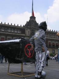 | Keywords: Yunqe.JPG Junio de 2004 Ciudad de Mexico Manifestantes contrarios a los convocantes de la Marcha en contra de la inseguridad protestaron por la influencia abierta de grupos ultraconservadores en el gobierno mexicano especialmente el grupo El Yunque ligado al gobernante Partido Acción Nacional 2004-06-27 own assumed Chapulinera Plaza de la Constitución Mexico City |