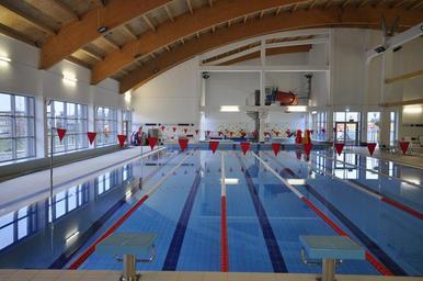 Keywords: zagan poland pool swimming water building inside interior architecture recreation sports ceiling exercise lanes flags lights reflections lighting