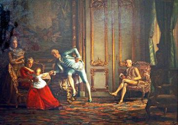 | Keywords: Zahrtmann Szene Kopenhagener Hof@Christian VII. Struensee Caroline Mathilde .jpg  Artwork de Szene am Kopenhagener Hof mit Struensee Caroline Mathilde und Christian VII 1881 oil on canvas Institution Residenzmuseum im Celler Schloss accession number BM 1391 uploader was Hajotthu at http //de wikipedia org de wikipedia PD-old-auto-1923 1917 Kristian Zahrtmann Queen Caroline Mathilde of Denmark Christian VII of Denmark Johann Friedrich Struensee Residenzmuseum im Celler Schloss Rococo Revival paintings |