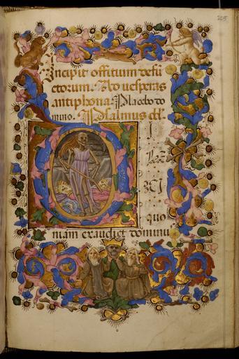 | Keywords: Zanobi di Benedetto Strozzi - Leaf from Adimari Book of Hours - Walters W767205R - Open Obverse.jpg ink paint gold parchment cm 13 4 9 4 accession number W 767 205R 37040 The Adimari family Florence ca 1448 family coat of arms on fol 15r Reverend Walter Sneyd prior to December 16 1903 mode of acquisition unknown Sale Sotheby's London December 16 1903 lot 555 note on rear paste-down Charles Fairfax Murray December 16 1903 by purchase C W Dyson Perrins 1906 Sale Sotheby's London December 1 1959 lot 80 Walters Art Museum Baltimore December 1 1959 by purchase Museum purchase 1959 A Renaissance Gem Revealed Petrarch's Triumphs Disbound The Walters Art Museum Baltimore 2002 place of origin Florence Italy Walters Art Museum license 2D Walters MS W767 - Adimari Book of Hours Personifications of death in miniatures |