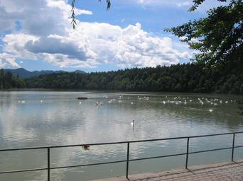 Keywords: ZbiljskoJezero1.jpg Zbiljsko jezero lake on river Sava Slovenia own 2007-07 Sl-Ziga Lake Zbilje Swans of Slovenia Cygnus olor swimming flocks