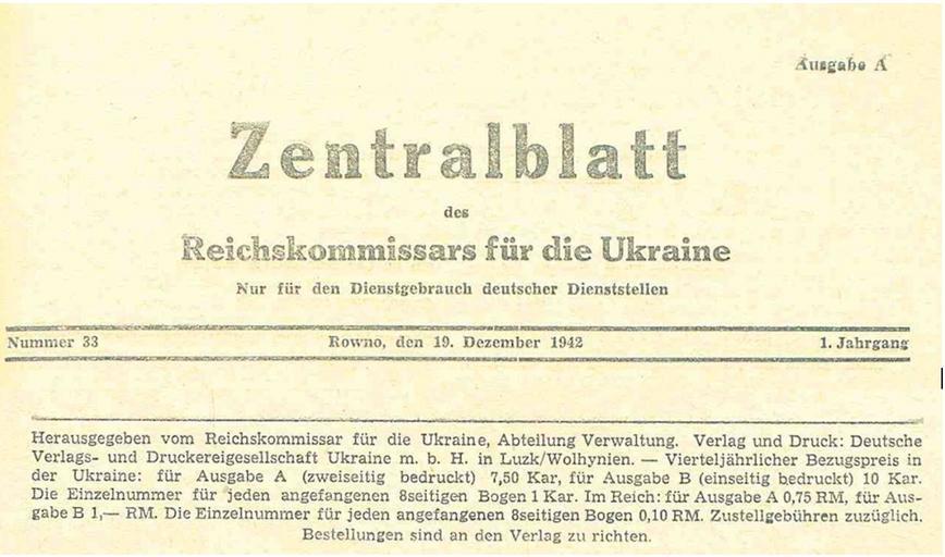 Keywords: Zbttopandbottom1942.jpg en official Nazi mewspaper for Reichskommissariat Ukraine - header and printing details only CDVAVO image copy by Jo0doe PD-Ukraine Nazi propaganda Ukraine in World War II